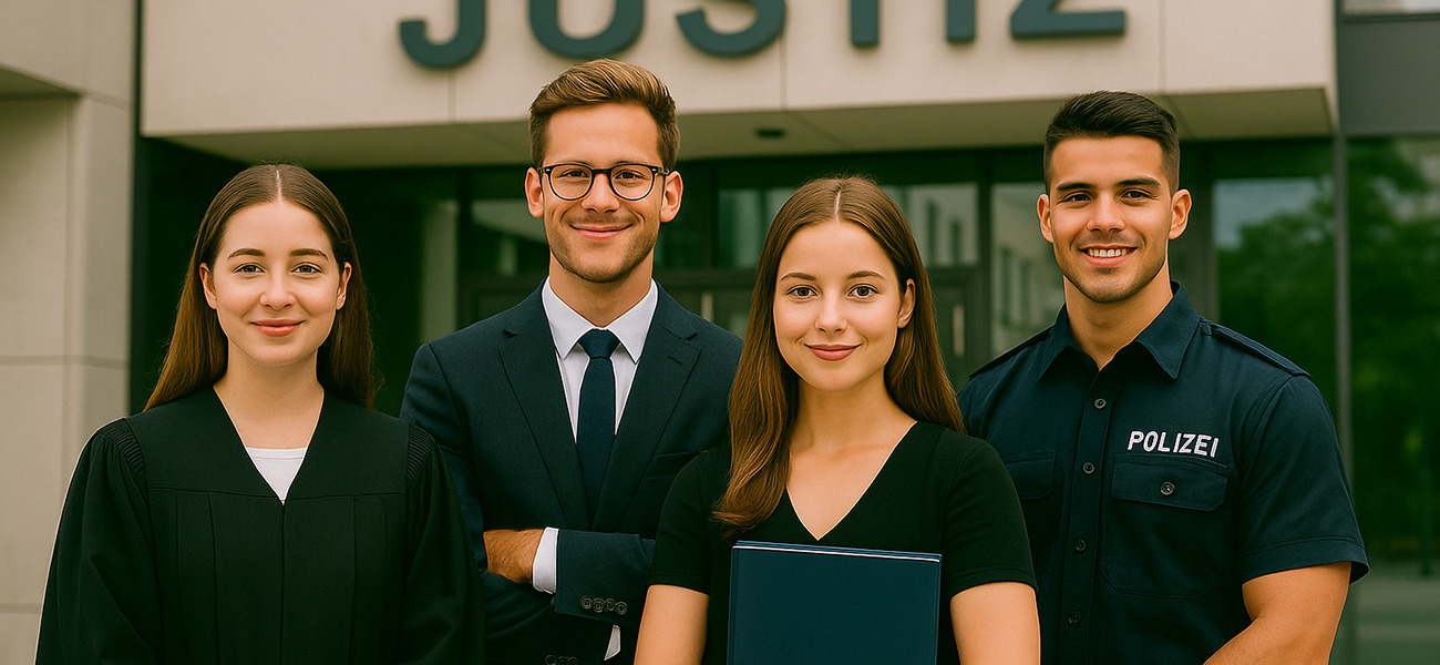 Wer sich für den Bereich interessiert, hat viele Möglichkeiten. Die klassische Ausbildung ist zur Justizfachangestellten bzw. zum Justizfachangestellten. Hier lernst du alles Wichtige im dualen System: Theorie in der Berufsschule, Praxis im Gericht oder der Staatsanwaltschaft.