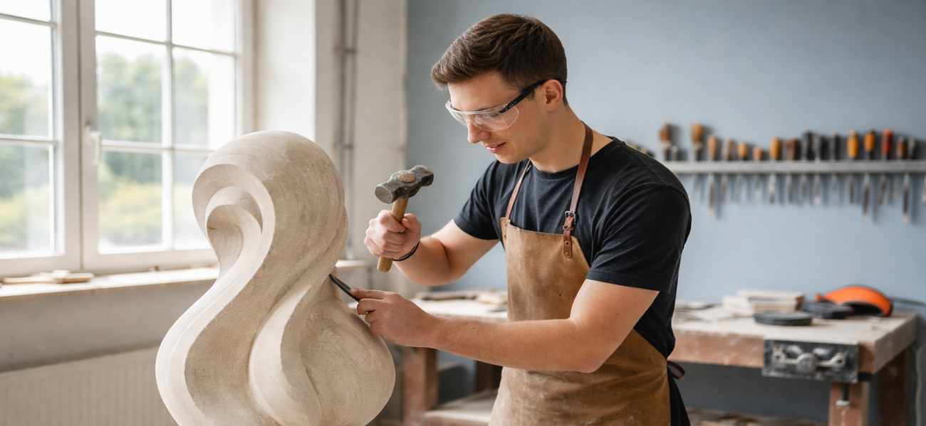 Sicherheit geht vor: Staubschutzmasken, Gehörschutz und stabile Schuhe sind Standard. Digitale Tools wie 3D-Scanner ergänzen das Handwerk. Mit der Zeit wirst du Profi im Umgang – von der groben Blockierung bis zum polierten Finish.