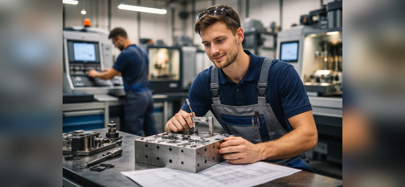 In der ersten Lehrzeit geht's um Grundlagen: Messen, Bohren, Fräsen. Später spezialisierst du dich auf Werkzeugbau – Entwurf lesen, CAD-Software nutzen, Werkzeuge schleifen. Die Berufsschule vermittelt Theorie wie Werkstoffkunde oder Rechnen mit Toleranzen. Viele Azubis sagen: "Es ist abwechslungsreich, nie langweilig." Nach dem Abschluss bist du Geselle/in und kannst Meister/in werden oder direkt ins Ausland gehen – Präzisionsfertigung ist weltweit gefragt.