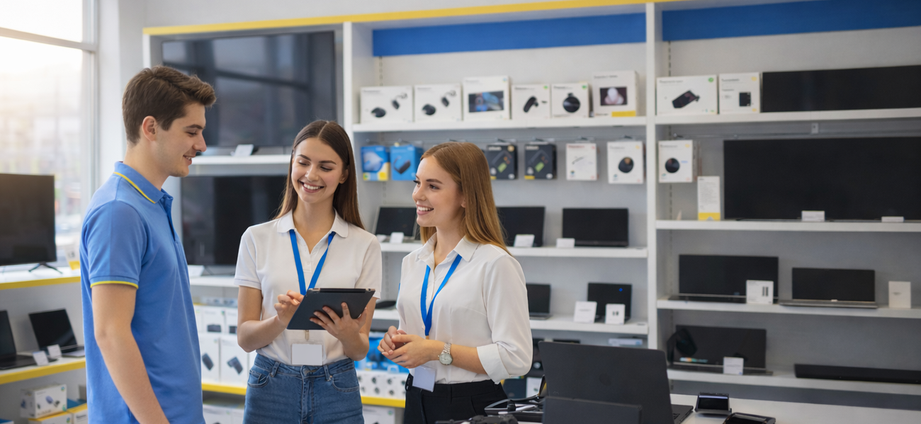 Als Kaufmann oder Kauffrau im Einzelhandel bist du nicht einfach nur Verkäufer. Du bist Berater, Problemlöser und oft der erste Ansprechpartner für Kunden, die vor wichtigen Kaufentscheidungen stehen. Du hilfst einem Studenten, den richtigen Laptop für sein Studium zu finden. Du zeigst einer älteren Person, wie sie ein Tablet bedienen kann, das sie mit ihren Enkeln verbinden wird. Du berätst einen Gamer, welche Hardware am besten zu seinen Anforderungen passt.
