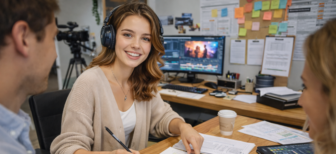 Realität: Teamplayer gesucht! Introvertierte glänzen im Schnitt oder bei der Planung, Extro's bei Drehs. Kommunikation lernst du: Von Kundeninterviews bis Teamkoordination. Soft Skills wie Empathie und Organisation zählen mehr als Show. In der Ausbildung übst du Bewerbungen, Präsentationen und Netzwerken – perfekt für den Einstieg ins Berufsleben.