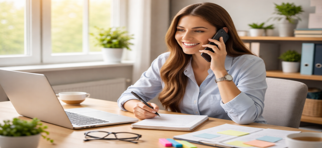 Bevor das Gespräch beginnt, schaffe eine ruhige Umgebung: Schalte laute Geräte aus, setze dich an einen aufgeräumten Ort und lege alles bereit, was du brauchst — Notizblock, Stift, Kalender und den Leitfaden mit deinen Stichpunkten. Kontrolliere die Telefonverbindung und die Akkuleistung; bei Handyempfangsproblemen wechsle, falls möglich, an einen Ort mit besserer Verbindung. Gute Vorbereitung reduziert Nervosität und lässt dich konzentrierter wirken.
